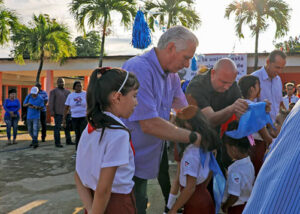 Antes, en el inicio del recorrido por centros de interés socio- económicos de la provincia, acompañado por Julio Heriberto Gómez Casanova, primer secretario del Comité Provincial del Partido y Alfre Menéndez Pérez, gobernador, el Jefe de Estado participó en la entrega de pañoletas a 88 alumnos de primer grado de la escuela primaria Antonio Maceo.